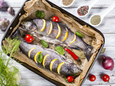 Rabell también recomienda comer pescado dos veces a la semana. Pescados como el salmón, trucha, sardinas, atún, caballa (mackerel) y arenques (herrings) tienen ácidos grasos Omega‑3, otro tipo de grasas buenas. Una porción equivale a 3 onzas o al tamaño de un mazo de cartas. La American Heart Association recomienda cocinarlo a la parrilla, al horno o hervido (poached).